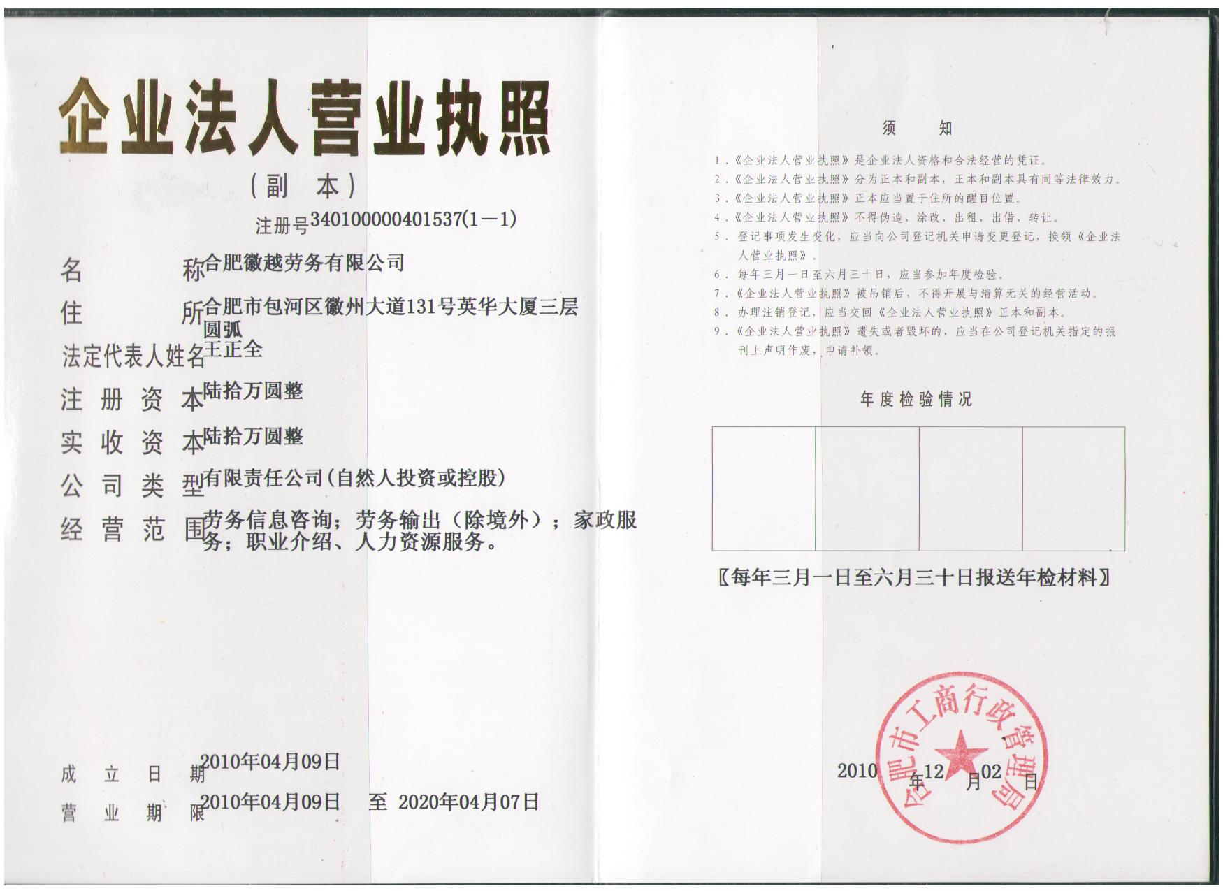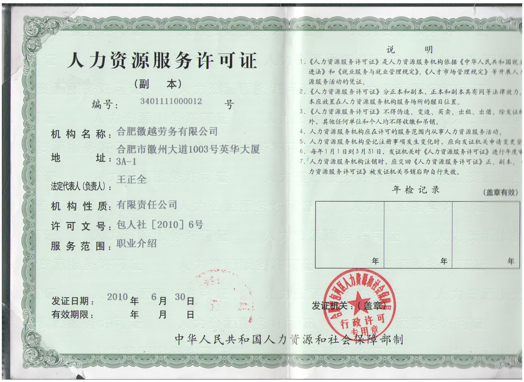 徽越公司自2008年中建總公司及多家世界500強(qiáng)企業(yè)授權(quán)招工資格以來,在同行業(yè)知名度信譽(yù) 度較高。徽越公司是安徽省一家經(jīng)過合肥市工商行政管理局(安徽省工商行政管理局備案審核)、合肥市勞動和社會保障局及合肥市建設(shè)委員會(安徽省建設(shè)廳資質(zhì)審批)審核批準(zhǔn)成立的正規(guī)合法的且具有豐富建筑勞務(wù)輸出和項目施工管理經(jīng)驗的信譽(yù)良好的勞務(wù)派遣和勞務(wù)分包...>>查看詳情